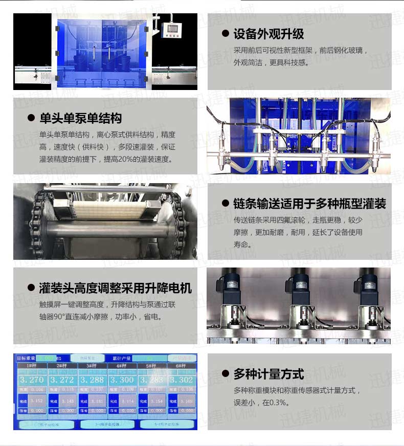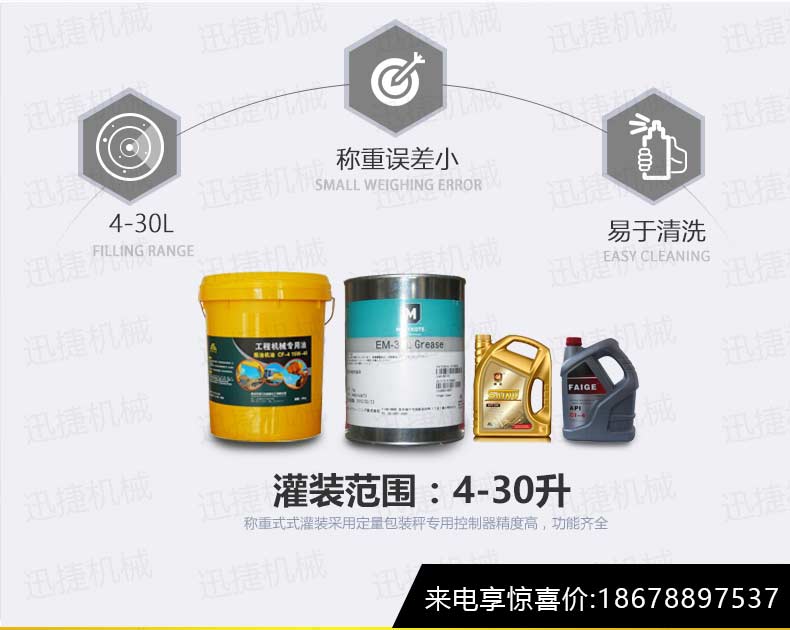 機油灌裝機適用于對4kg-25kg汽車用品類產(chǎn)品:潤滑油、防凍液、車用尿素等液體灌裝。自動完成計數(shù)進(jìn)瓶、計重量灌裝、輸送出瓶等一系列操作。 特別適用于潤滑油、水劑、食用油的定量灌裝,是食品,醫(yī)藥,化妝品以及精細(xì)化工等行業(yè)的理想灌裝機。本機采用可編程控制器(PLC)、高速工控組態(tài)軟件進(jìn)行實時監(jiān)控的控制,使用調(diào)節(jié)方便。整機按GMP標(biāo)準(zhǔn)要求制作,各管路連接采用快裝方式,拆卸清洗方便,與物料接觸部位及外露部位均采用不銹鋼制造。整機安全、環(huán)保、安全、美觀、能適應(yīng)各種不同環(huán)境工作。
