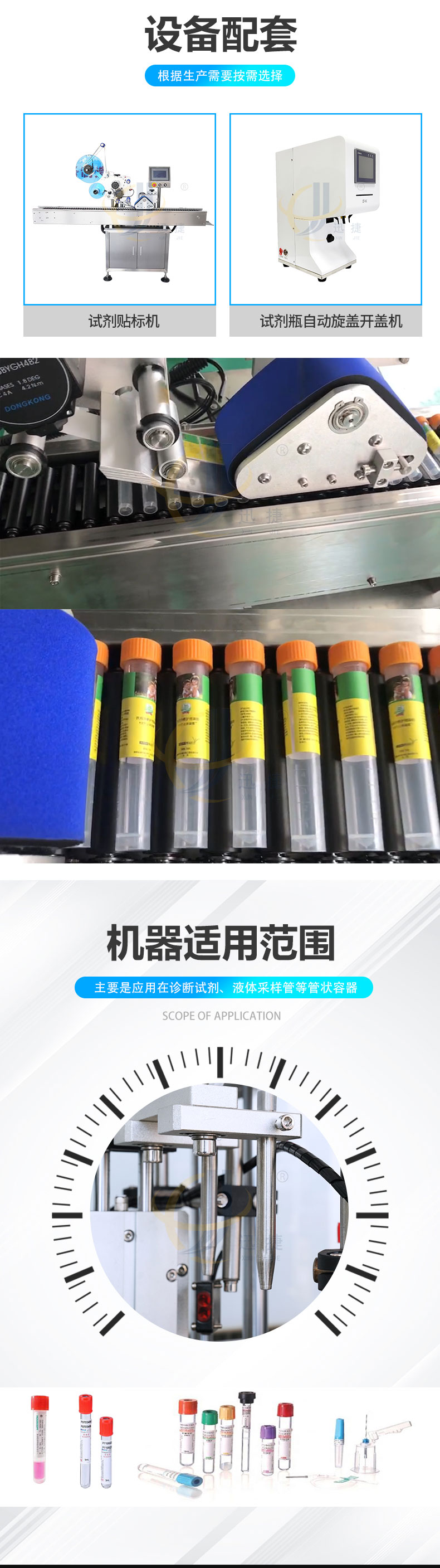 診斷試劑灌裝旋蓋機(jī)適用于診斷試劑、液體采樣管等管狀容器。本機(jī)可選配防塵罩搭配層流罩(FFU)結(jié)構(gòu),可達(dá)到局部百級環(huán)境下完成灌裝及封蓋。