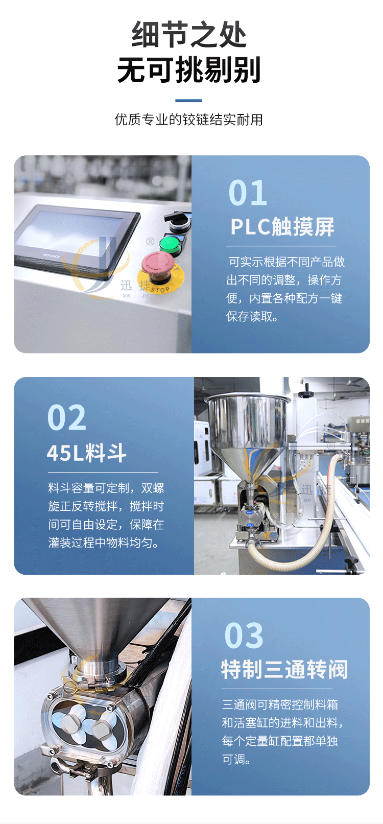 五極灌裝機:極快-單頭2200瓶/時 極簡-操作簡單 極廣-啥啥都能灌 極穩(wěn)-24小時不停機 極準-200g誤差小于1g。