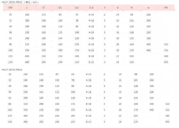 注:襯氟閥門殼體試壓和密封按照上表測(cè)試,高壓力要求情況訂制加工。