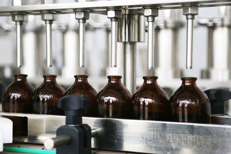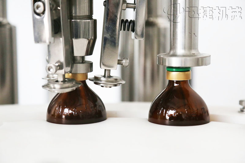 灌裝時灌裝頭潛入瓶底,緩慢上升,可有效防氣泡。灌裝針頭設有防滴漏裝置,確保灌裝精度,合格率大于99%。用柱塞式計量泵執(zhí)行灌裝,精度高;泵的結構采用快接式拆卸機構,便于清洗、消毒。