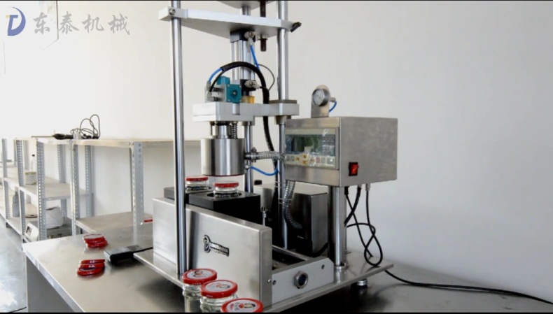 先從個詞半自動來講,半自動指的就是手動與機器相結(jié)合的操作流程:半自動玻璃瓶真空封口機是采用了人工上瓶,人工出瓶,機動旋蓋與抽真空的方式來完成流程。由于人工上瓶,并且該半自動玻璃瓶真空旋蓋機有無瓶不上蓋,無瓶不抽真空的特點,所以大大減少了對瓶蓋與瓶身的損害。并且人工與機器的配合絲毫不浪費時間,比純手工的生產(chǎn)效率要幾倍,還更節(jié)省人力,一臺機器只需一個人便可輕松完成。