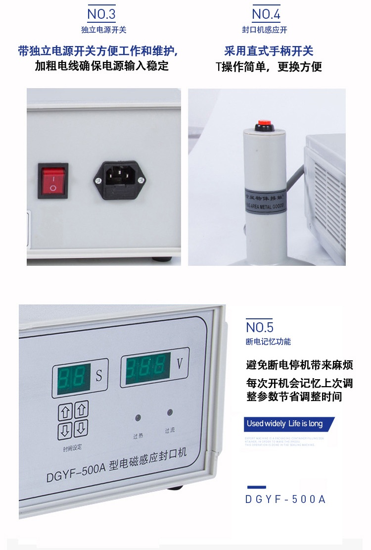 該封口機(jī)為手持式鋁箔封口機(jī),是一種便攜式電磁感應(yīng)加熱封口設(shè)備,專為制藥、化工、農(nóng)藥、食品、化妝品、輕工行業(yè)對容器進(jìn)行鋁箔嚴(yán)密封口