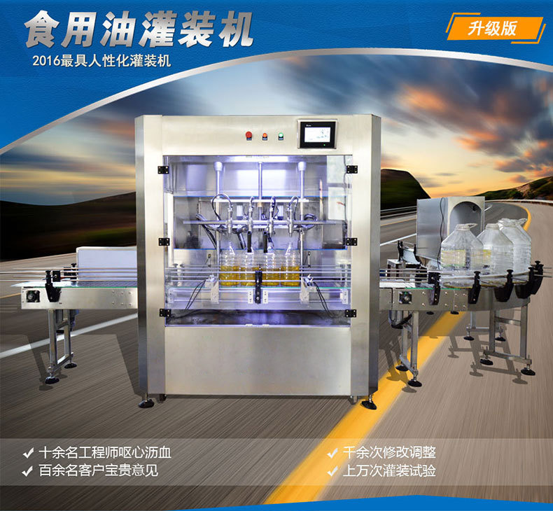 產(chǎn)品簡介:全自動玉米油灌裝機是全自動油類灌裝設(shè)備中比較特殊的一種,是根據(jù)玉米油的的特殊品質(zhì)而量身打造的專門用來灌裝玉米油類產(chǎn)品的全自動灌裝機械。該設(shè)備采用先進的定量灌裝技術(shù),將微電子智能控制技術(shù)與程序控制應用于本灌裝機,使之成為機電一體化的新型產(chǎn)品。